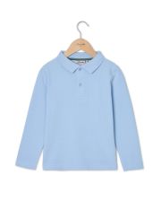 Polo en maille piquée pur coton. Manches longues. Col polo en côtes. Empiècement à l'intérieur sous l'encolure en popeline rayée. Fentes aux côtés.