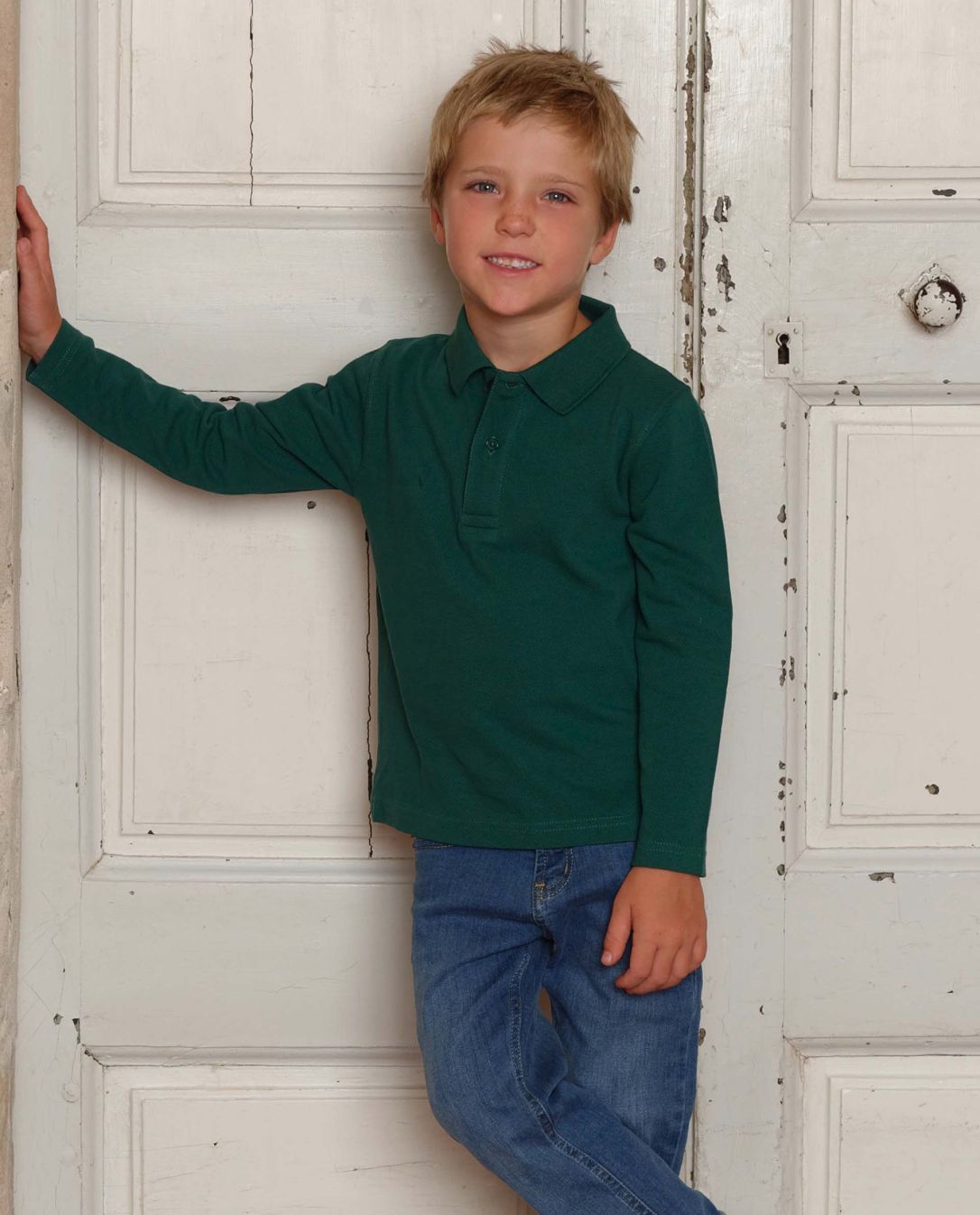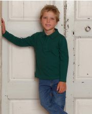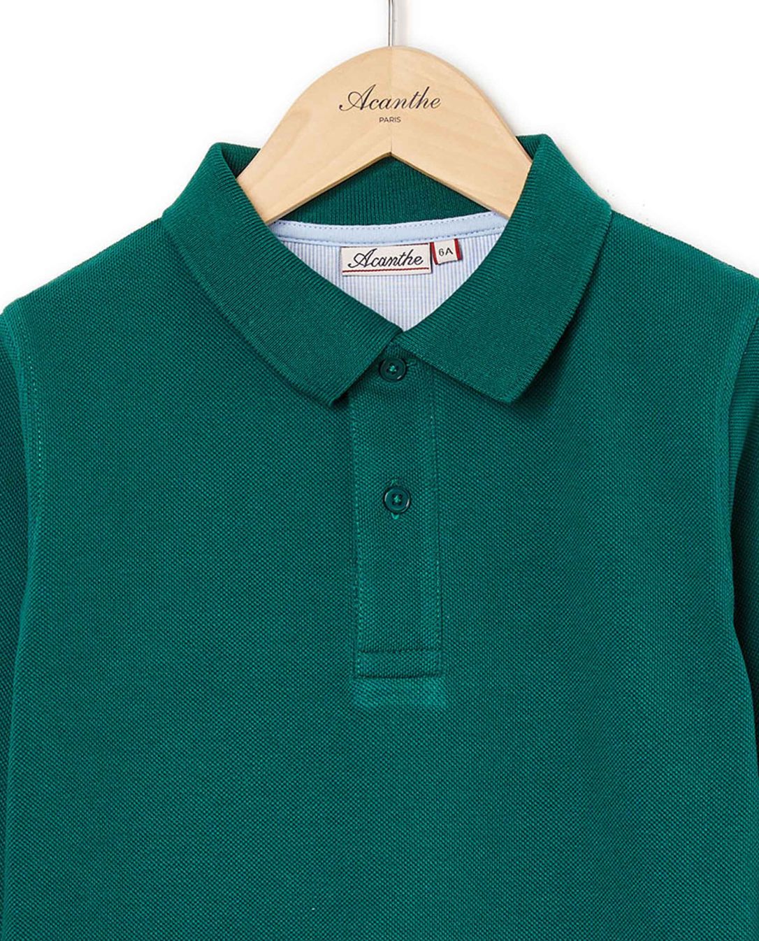Polo en maille piquée pur coton. Manches longues. Col polo en côtes. Empiècement à l'intérieur sous l'encolure en popeline rayée. Fentes aux côtés.