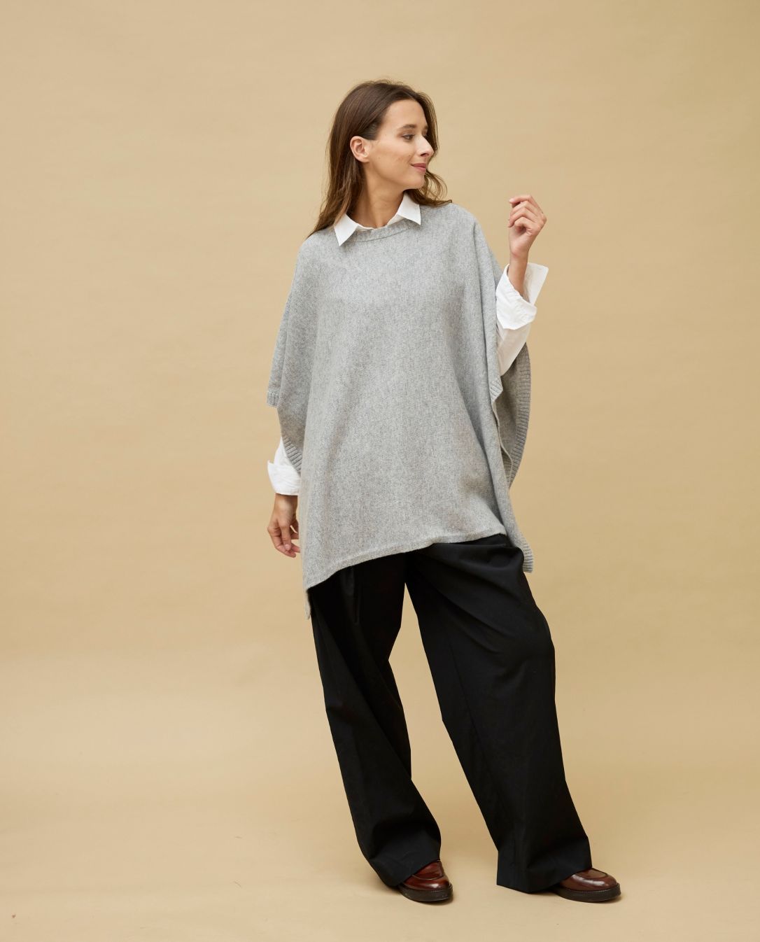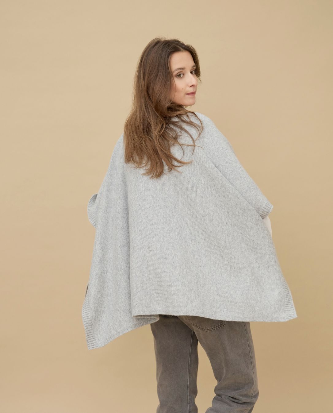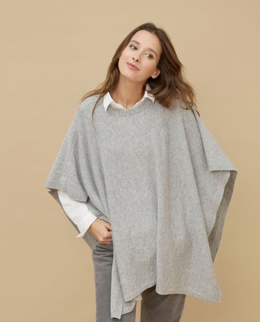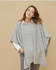 Poncho col rond en cachemire double fil. Taille unique. Finition bord-côtes. Longueur 66 cm. Largeur 96 cm. 100% cachemire.