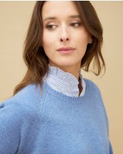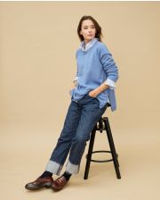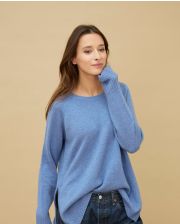Large pull encolure ronde. Fente zippée de chaque côté. Finition bord-côtes. 100% cachemire.