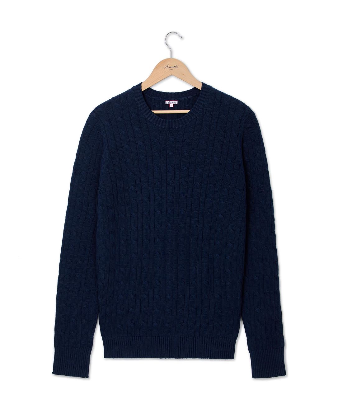 Pull torsades coton. Encolure ronde. Torsades devant et dos. Finitions bord côtes. Le mannequin mesure 1,83m et porte une taille L.
