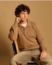 Pull col polo en cachemire double fil. Finition bord côtes.