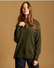 Pull loose encolure ronde en cachemire double fil. Deux fentes côté. Finition bord côtes. Taille unique.