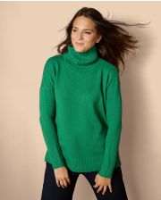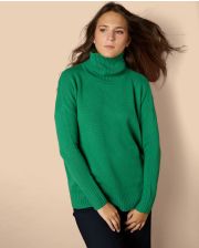 Pull col roulé ample vert pré 100% cachemire vert pré