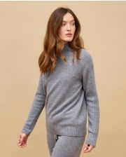 Pull col montant en cachemire double fil. Côtes plates au col, le long des manches et au bas du pull. 100% cachemire.