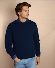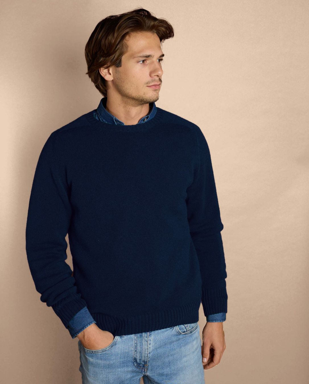 Pull encolure ronde. Finition bord-côtes. Laine 90 mérinos/10 cachemire.