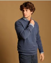 Pull encolure ronde en cachemire double fil. Finition bord côtes. Le mannequin mesure 1,83m et porte une taille L.