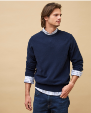 Pull encolure ronde en cachemire double fil. Finition bord côtes. 100% cachemire.