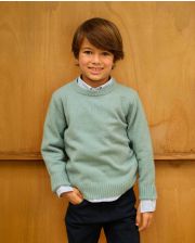 Pull col rond vert d'eau 100% lambswool