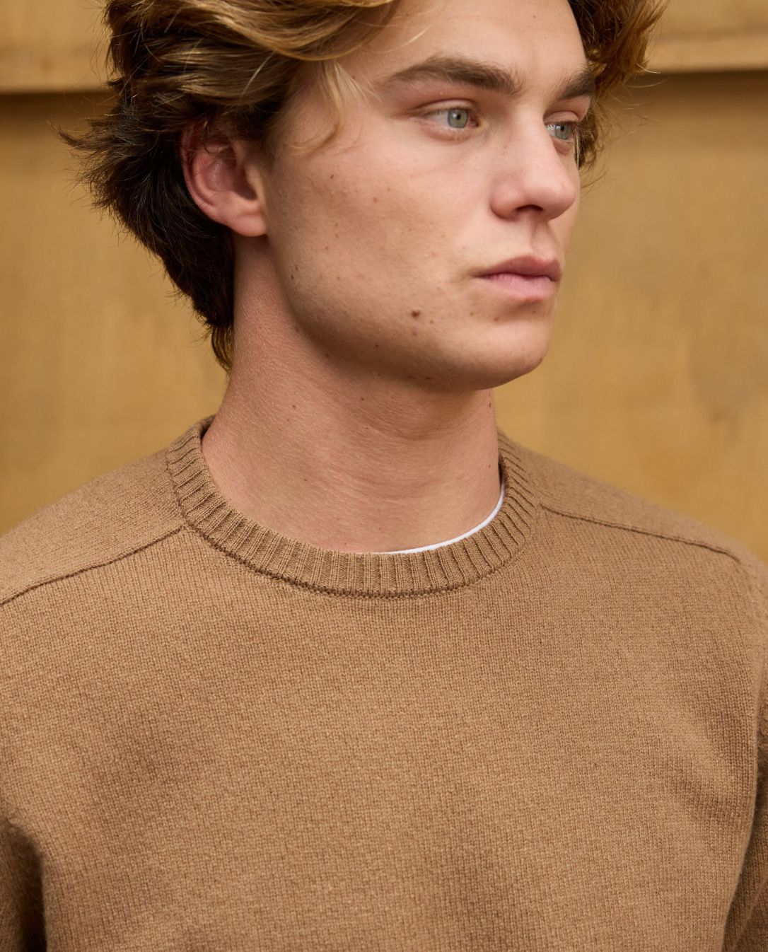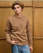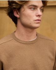 Pull encolure ronde en jersey. Manches longues. Finition bord-côtes. Pure laine d'agneau. Le mannequin mesure 1m90 et porte une taille XL. 100% lambswool.