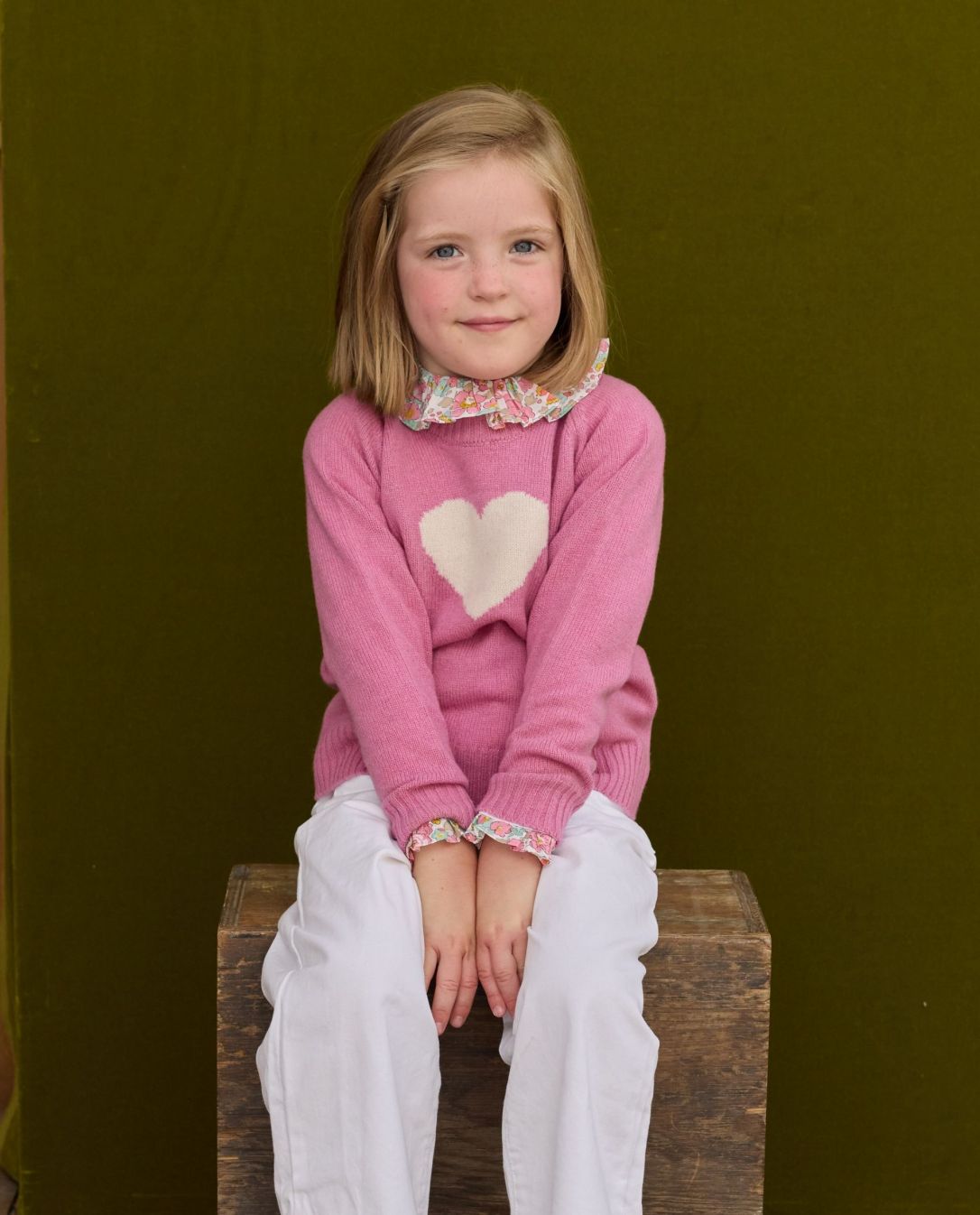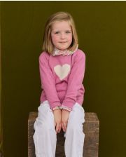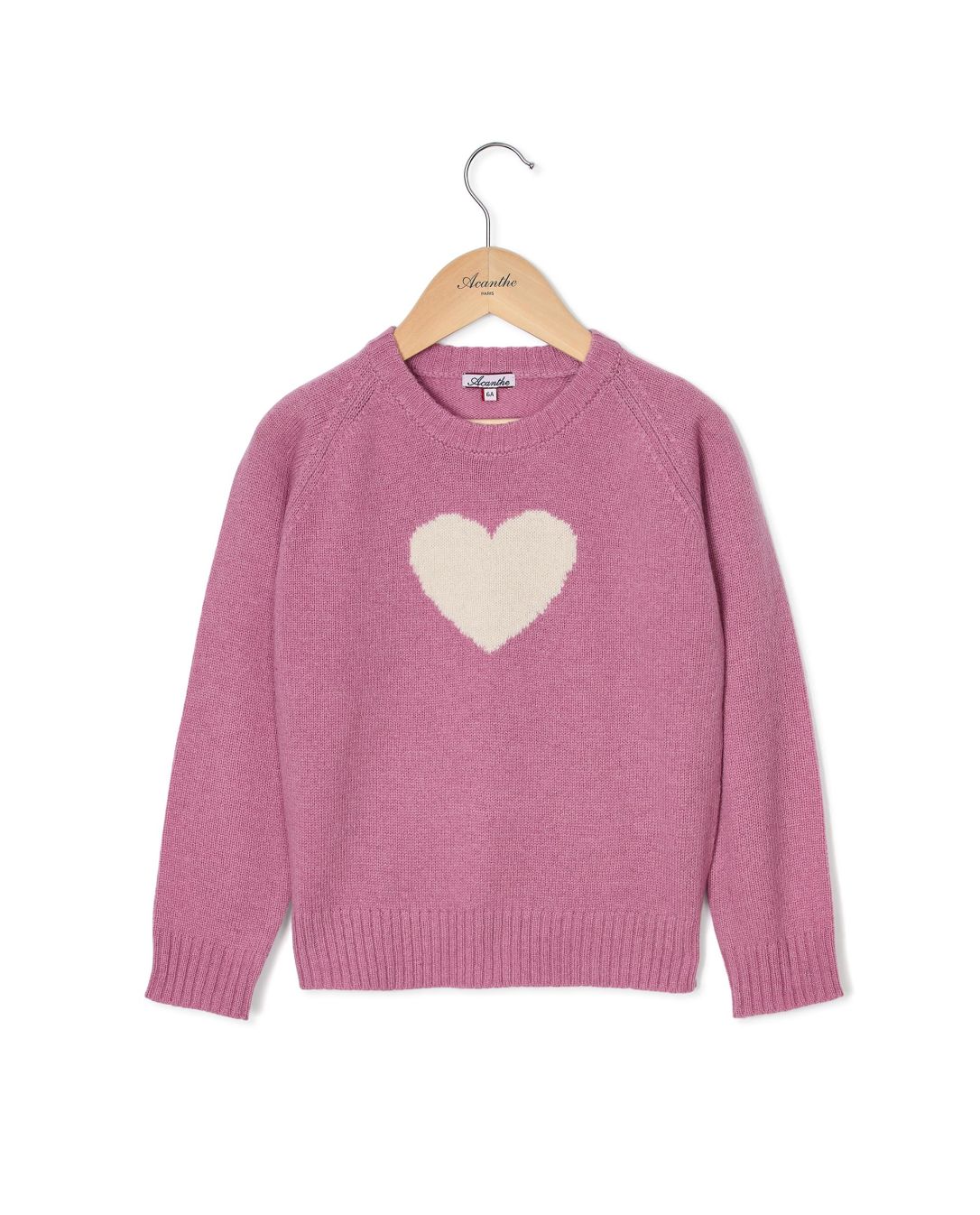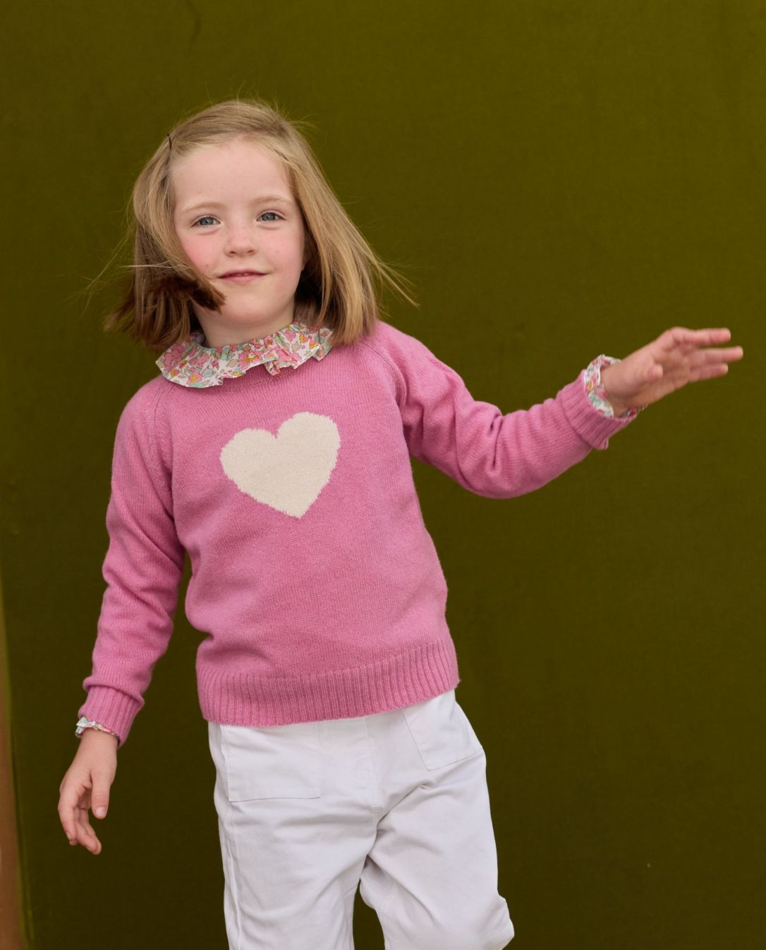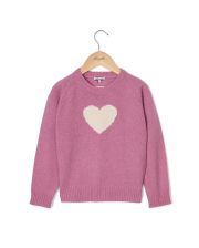 Pull col rond, jacquard coeur au milieu devant. Finition bords côtes. Pure laine d'agneau.