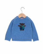 Pull col rond jacquard ourson bleu 100% lambswool