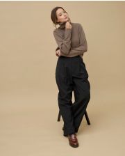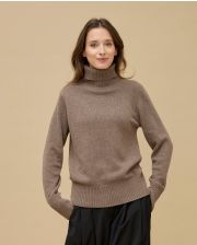 Pull col roulé droit en laine et cachemire. Finition bord-côtes. 90% laine - 10% cachemire.