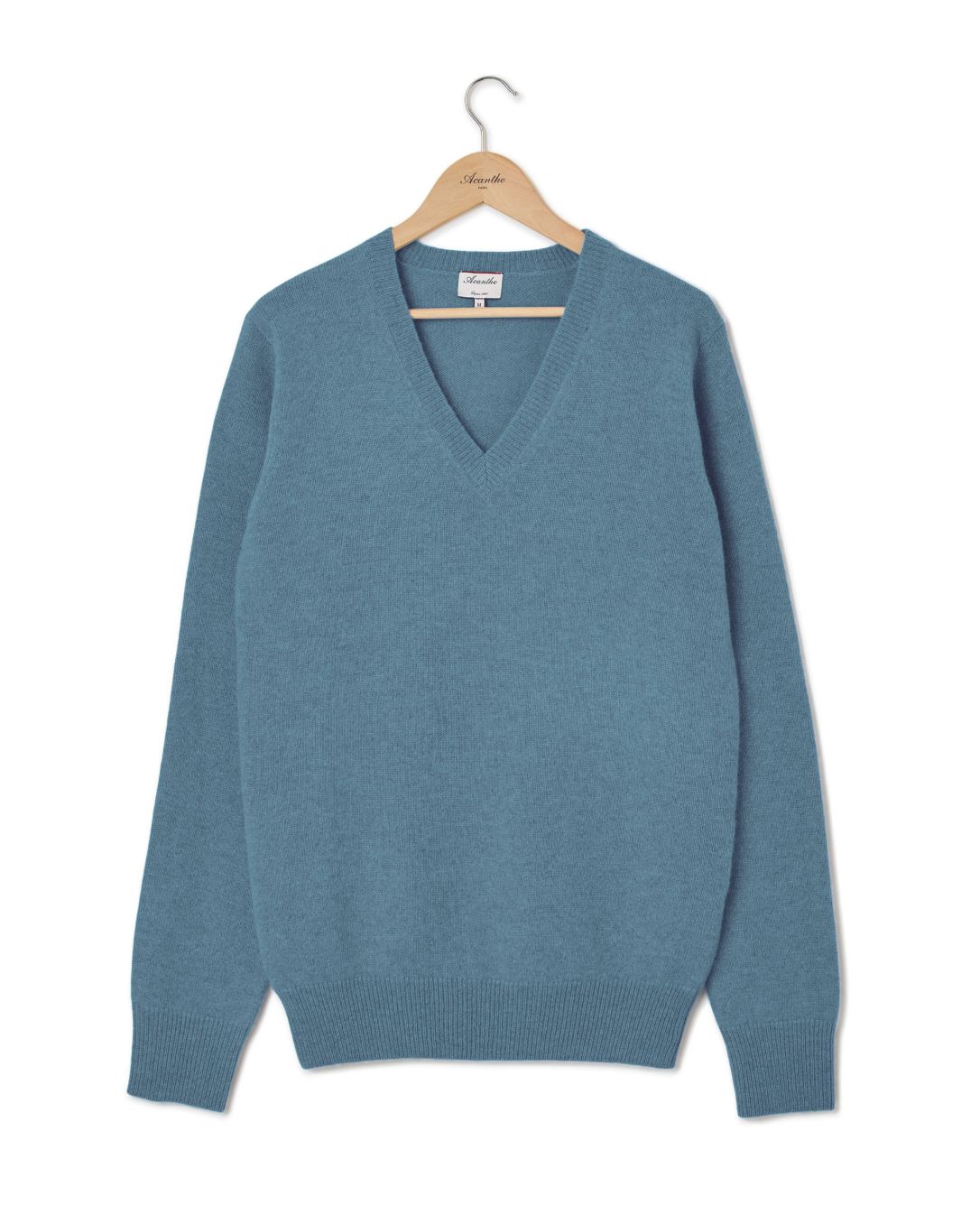 Pull encolure V. Finition bord côtes. Pure laine d'agneau.
