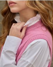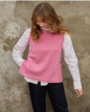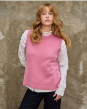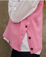 Pull col rond sans manches, avec ouvertures boutonnées sur les côtés. 100% lambswool. Longueur depuis l'épaule : 62 cm. Taille unique.Le mannequin mesure 1m73. .