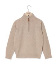Pull col zippé avec intérieur contrasté. Finition bord côtes. Pure laine d'agneau.