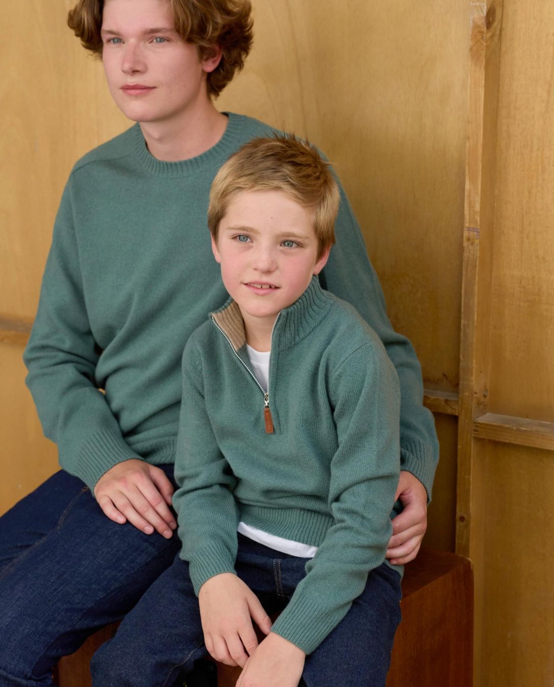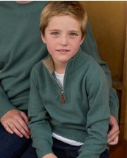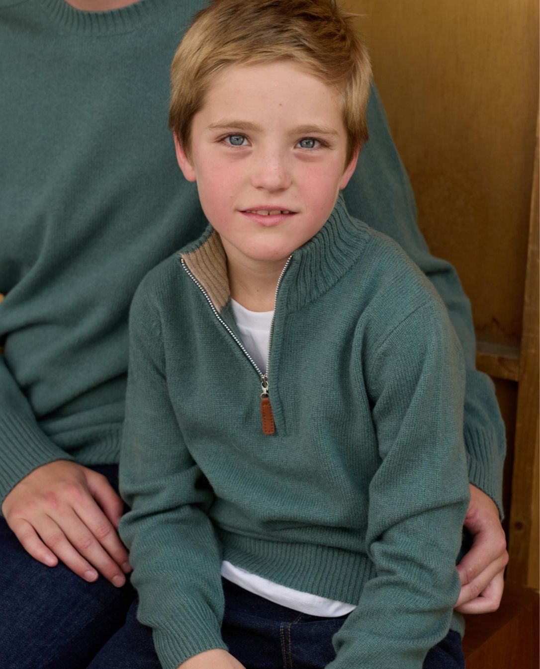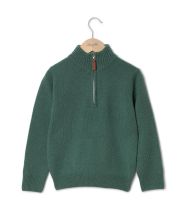 Pull col zippé avec intérieur contrasté. Finition bord côtes. Pure laine d'agneau.