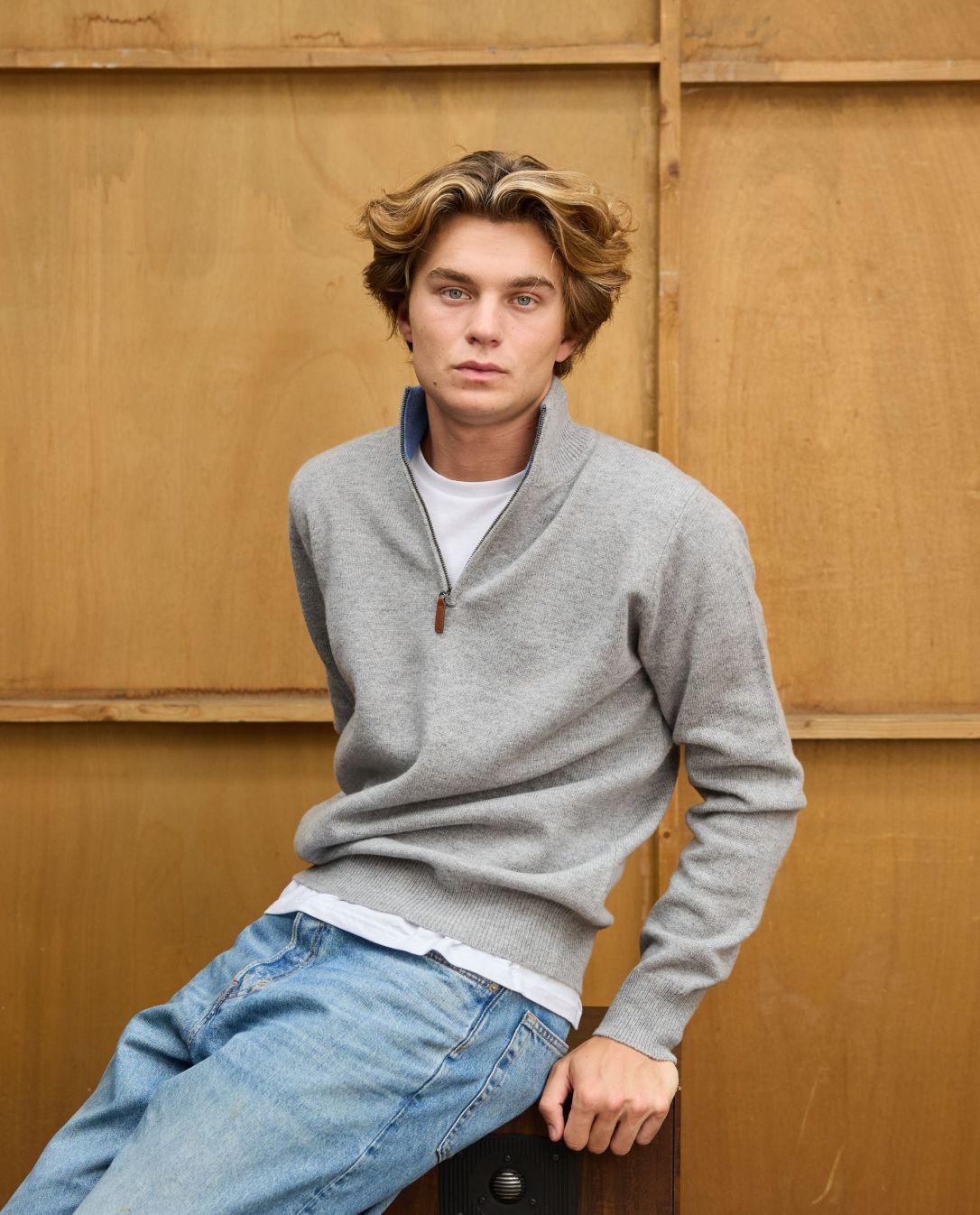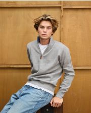 Pull en jersey. Col zippé avec intérieur contrasté. Manches longues. Finition bord-côtes. Pure laine d'agneau. Le mannequin mesure 1m90 et porte une taille XL. 100% lambswool.