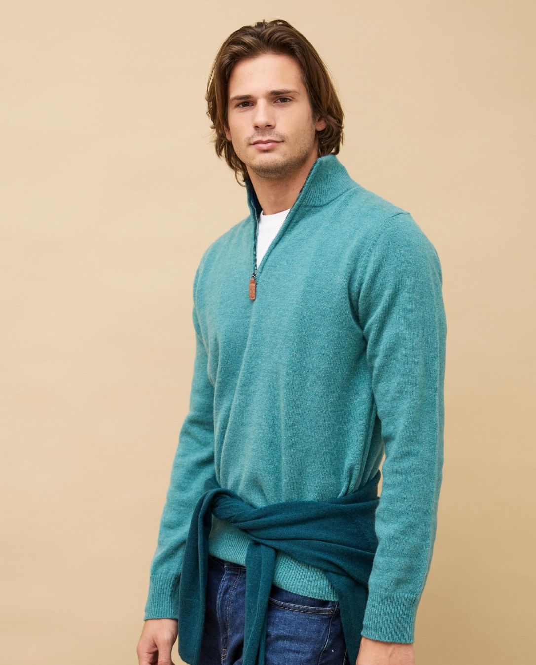Pull en jersey. Col zippé avec intérieur contrasté. Manches longues. Finition bord-côtes. Pure laine d'agneau. 100% lambswool.