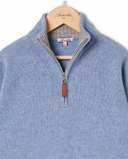 Pull en jersey. Col zippé avec intérieur contrasté. Manches longues. Finition bord-côtes. Pure laine d'agneau.