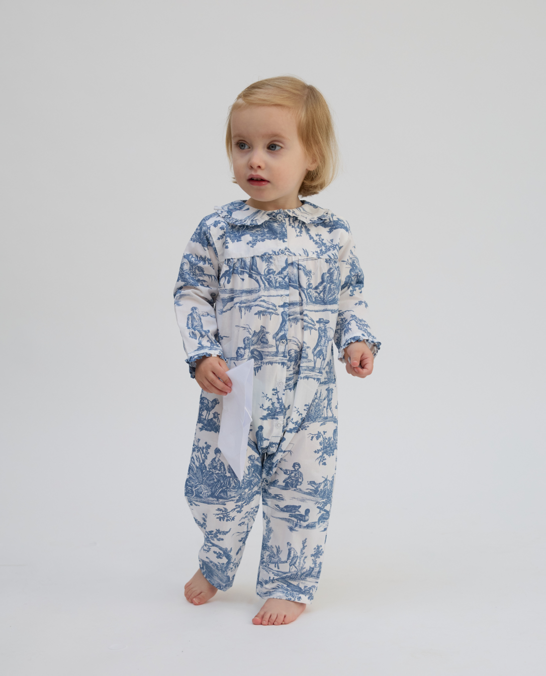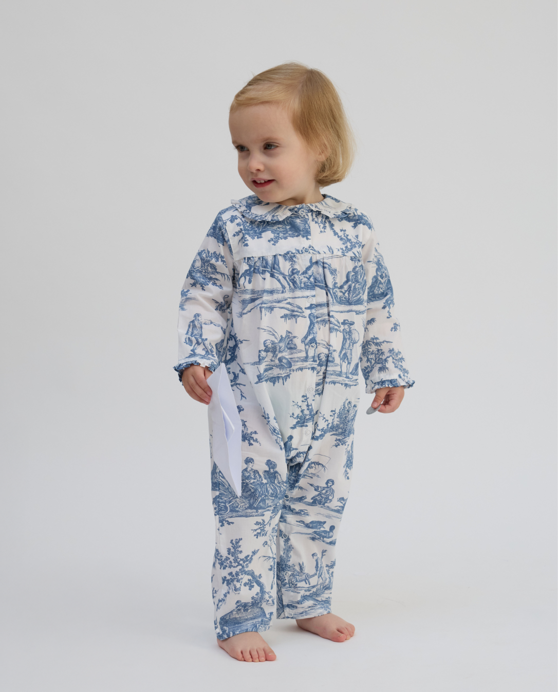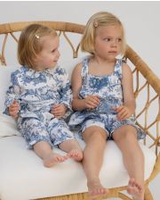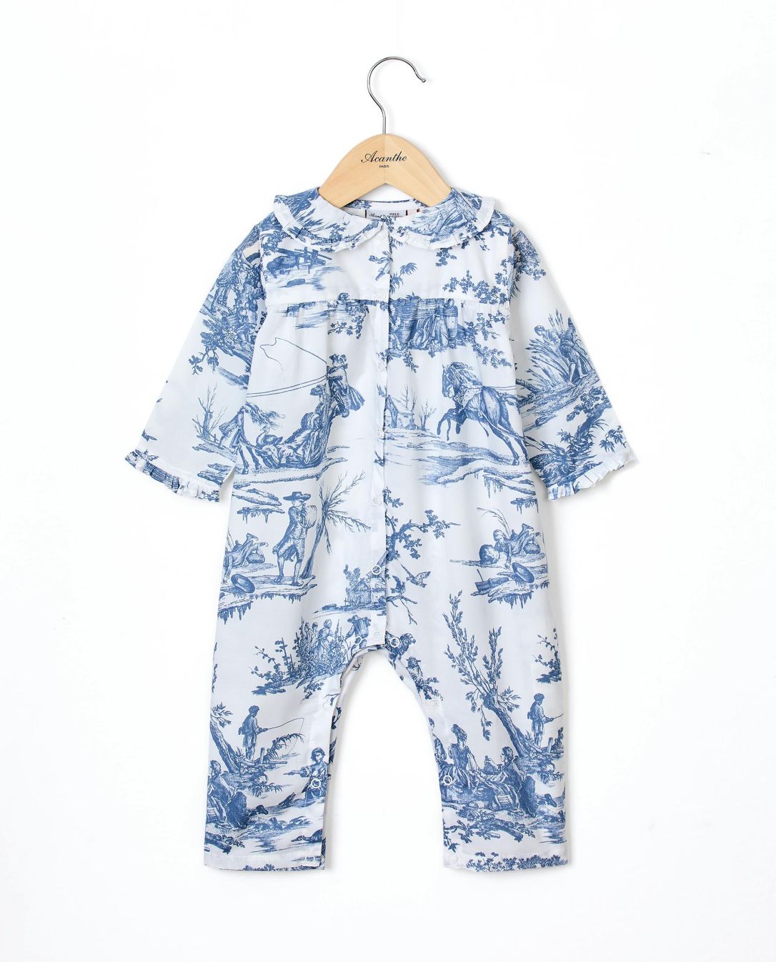 Combinaison-pyjama. Jambes et manches longues. Boutons pression devant. Finitions passepoil.100% coton. Motif TOILE DE JOUY depuis 1760® : Les délices des quatre saisons, Inv. 009.1.2.1. Manufacture Oberkampf, Musée de la Toile de Jouy.