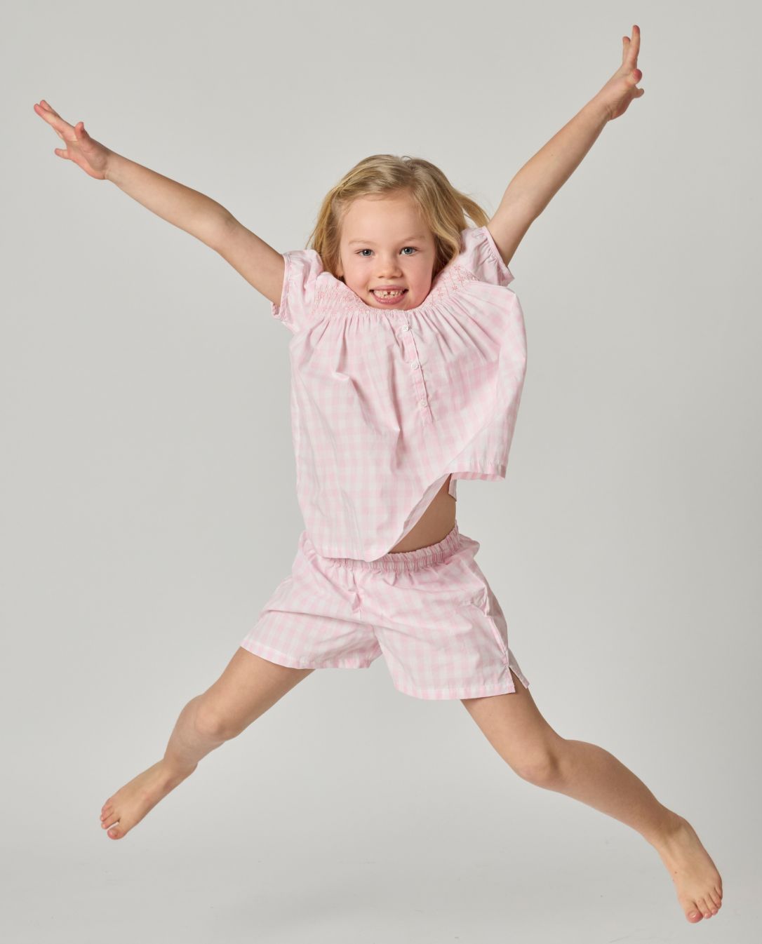 Pyjama d'été. Ensemble short et haut smocké manches ballon.
