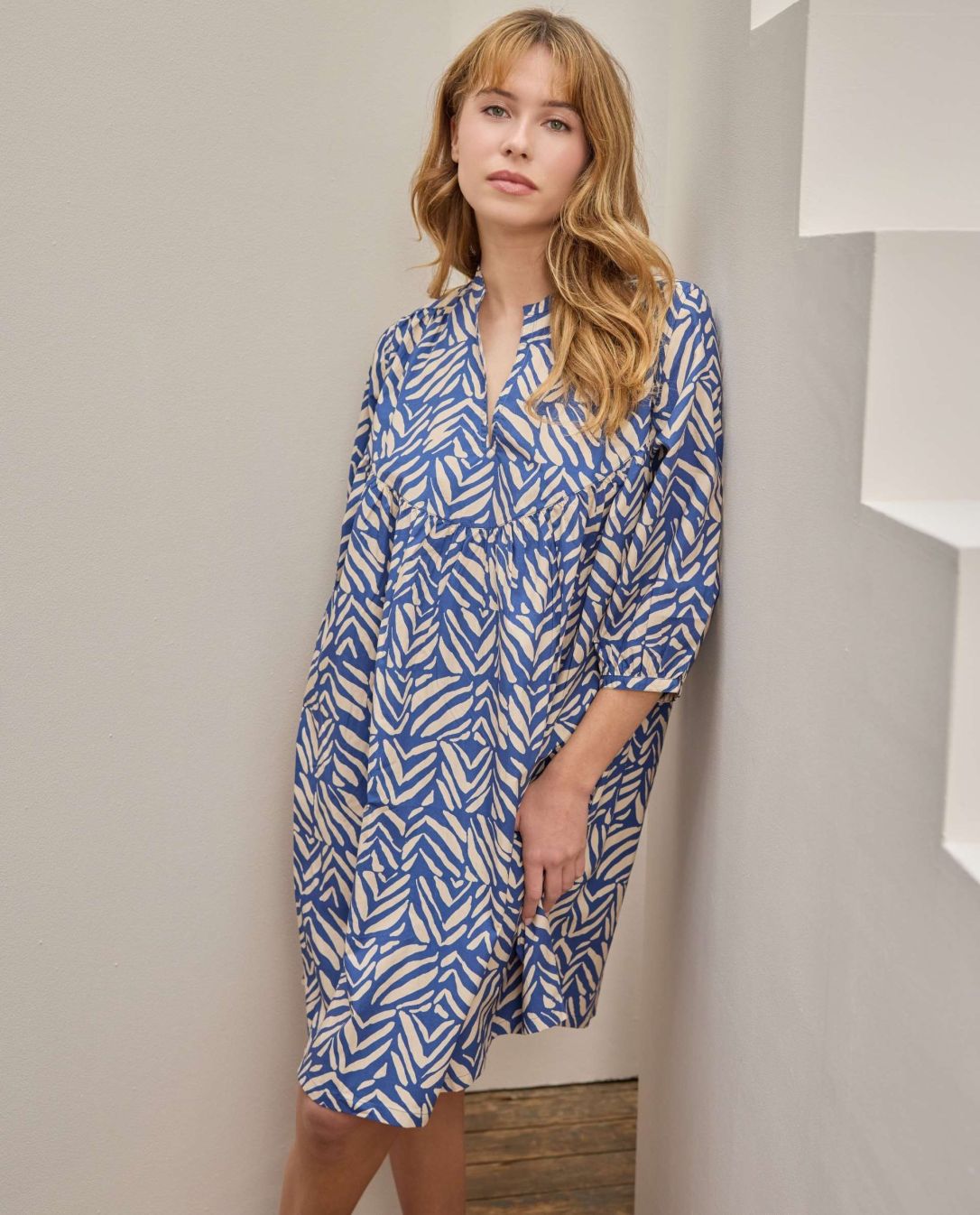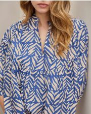 Robe ample, col droit fendu avec manches 7/8 bouffantes.100% coton. Longueur depuis l'épaule pour une taille 1 : 95 cm.Le mannequin mesure 1m73 et porte du T1.
