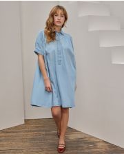 Robe ample avec plis plats devant et dos. Manches courtes. Deux poches côté. 100% coton. Longueur depuis l'épaule pour une taille 1 : 97 cm.Le mannequin mesure 1m73. .
