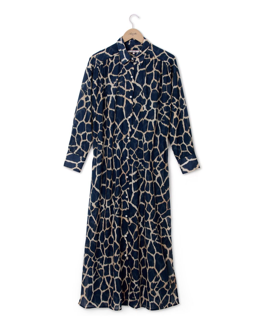 Robe chemisier loose. Manches longues. Epaules tombantes. Fentes de 35 cm de chaque côté au bas de la robe. Voile de coton. Longueur totale 128 cm toutes tailles. Le mannequin mesure 1,77m et porte une taille 1.