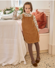 Robe trapèze à bretelles boutonnées. Velours grosses côtes. Pur coton. 100% coton.