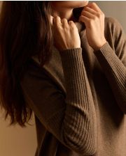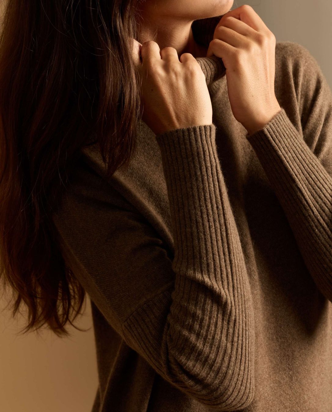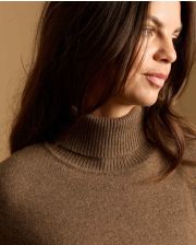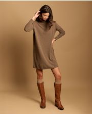 Robe ample col roulé maille jersey cachemire double fil. Manches longues ajustées en côtes. Taille unique.