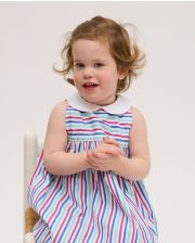 Robe sans manches. Col rond en popeline blanche. Bas froncé à partir de la taille haute.100% coton.