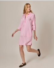 Robe V croisé. Manches 7/8. Décolleté en V croisé, légèrement froncé dessous. Popeline coton. Longueur totale 95 cm en taille 1. Le mannequin mesure 1,73m et porte une taille 1.