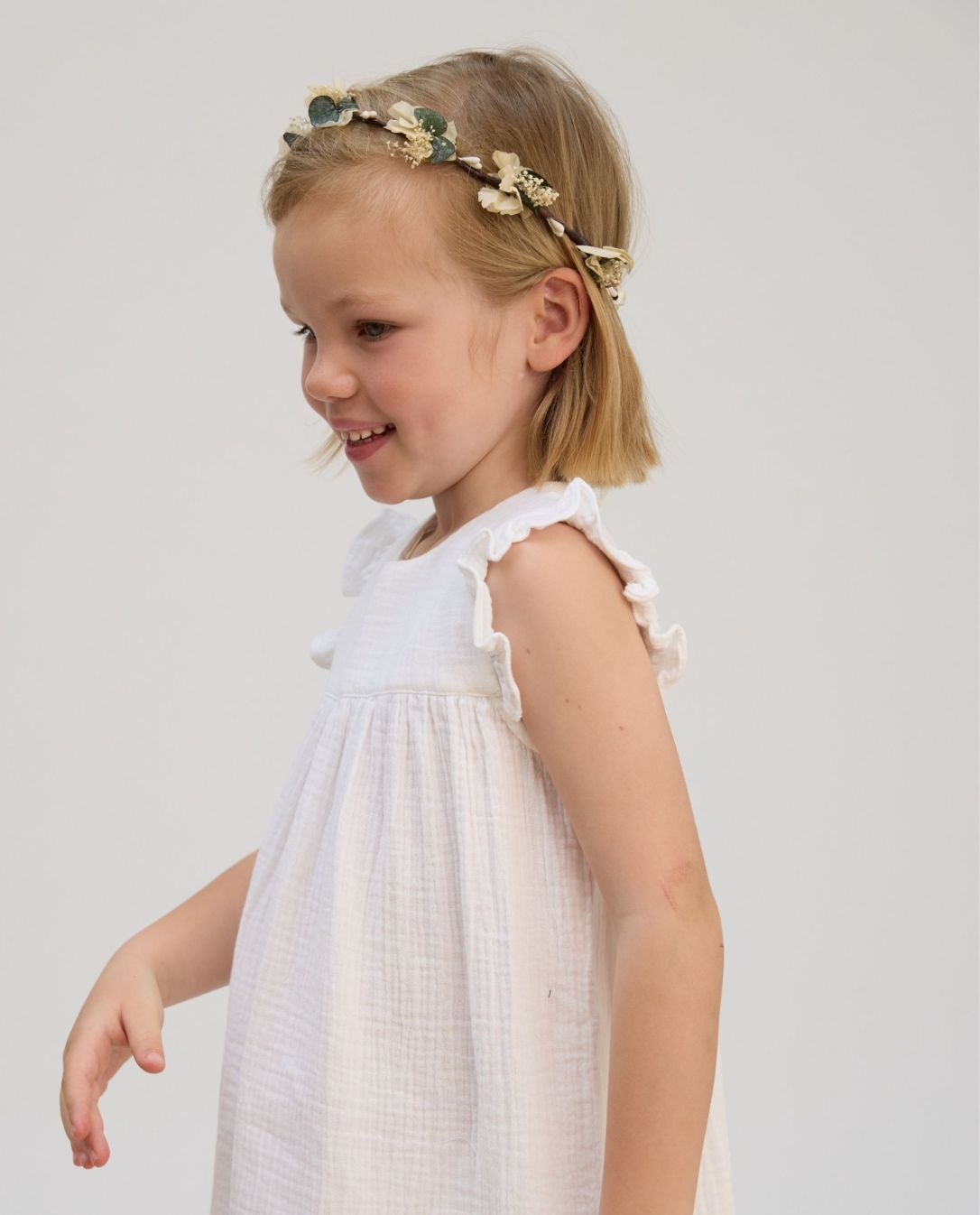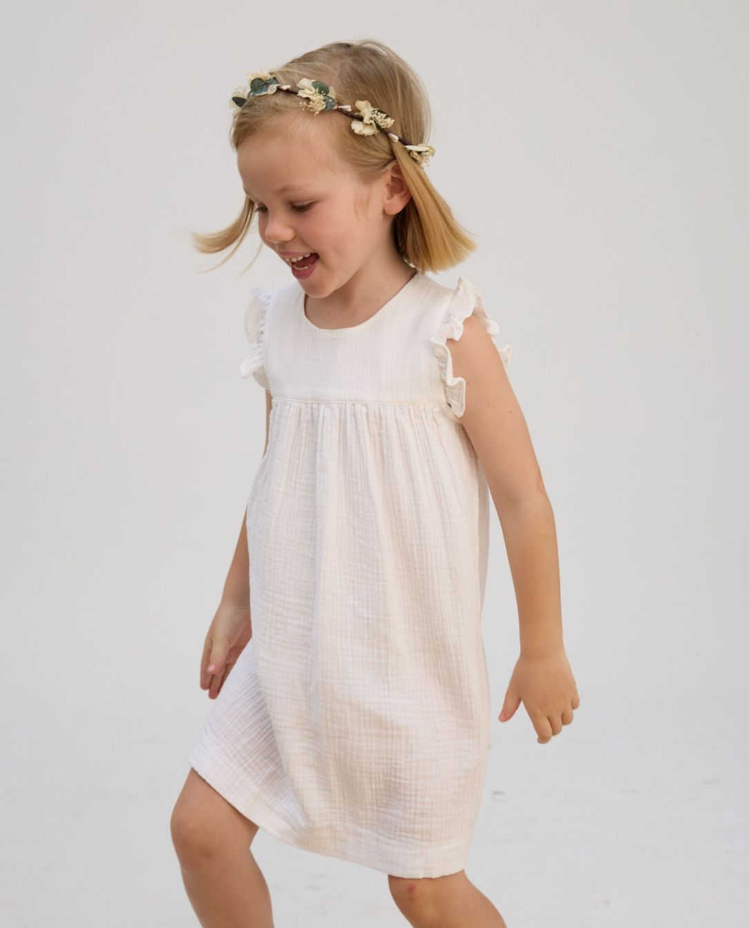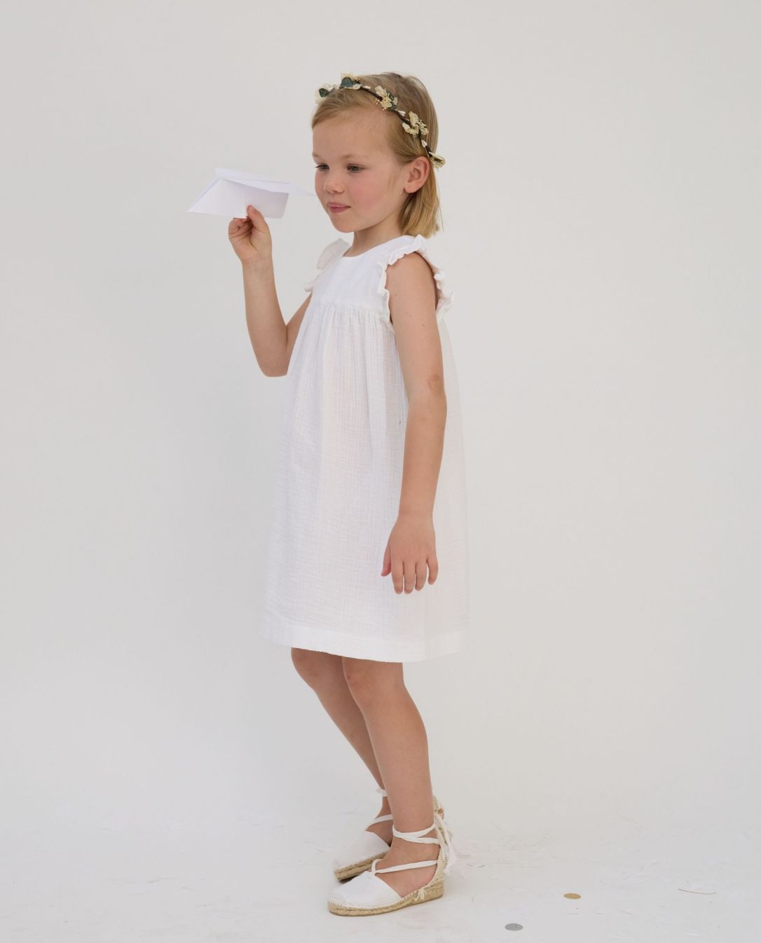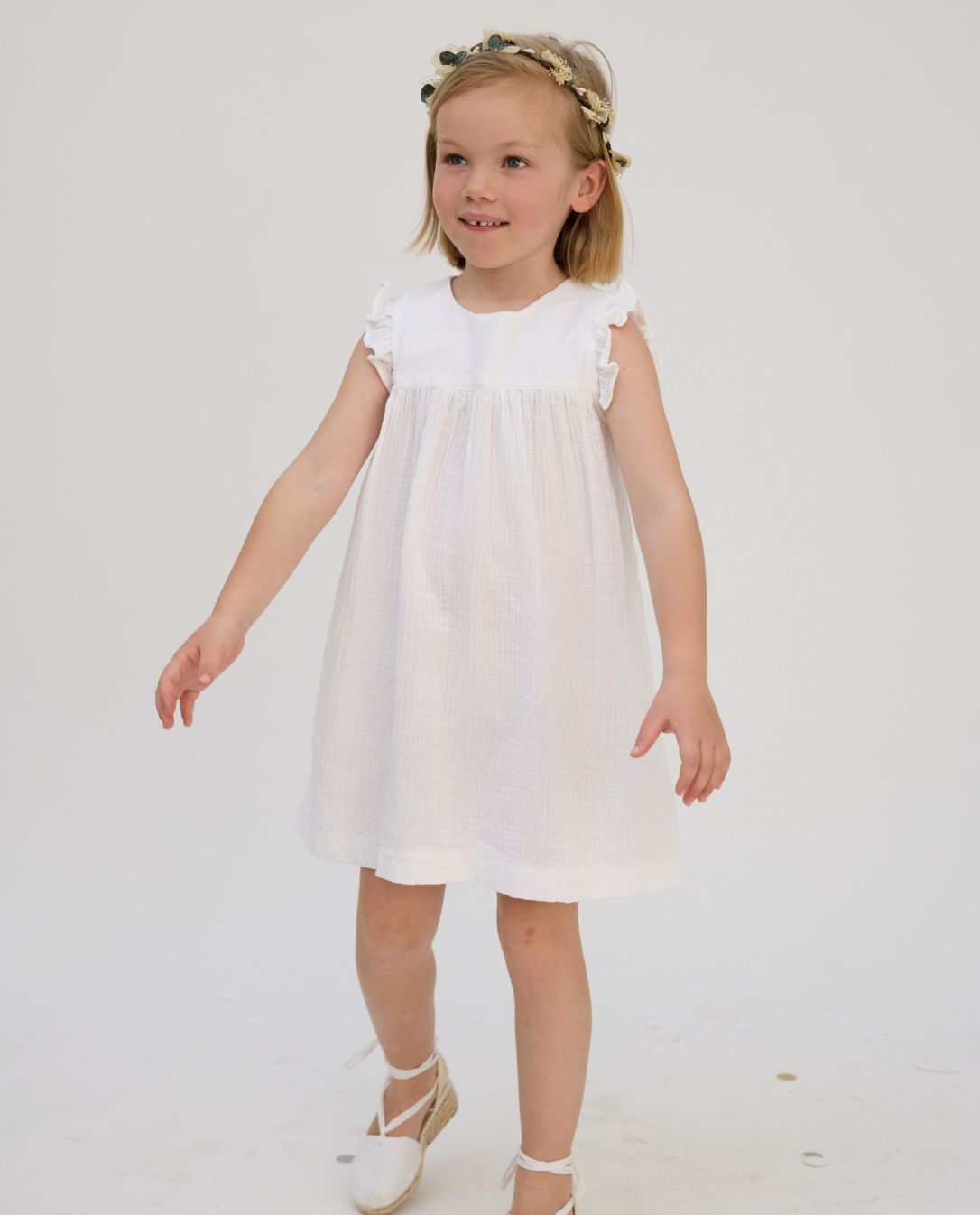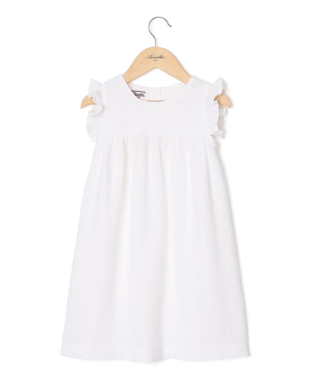 Robe volant épaule gaze de coton blanc