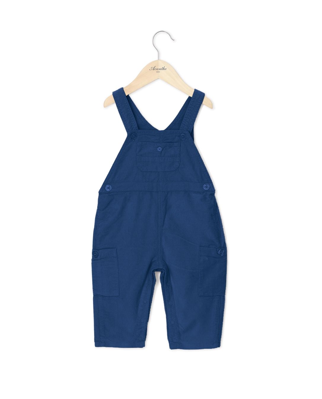 Salopette longue en velours coton. Bretelles boutonnées. Ouvertures côtés et pressions à l'entrejambe. Poche sur la bavette. Doublure en toile de coton.