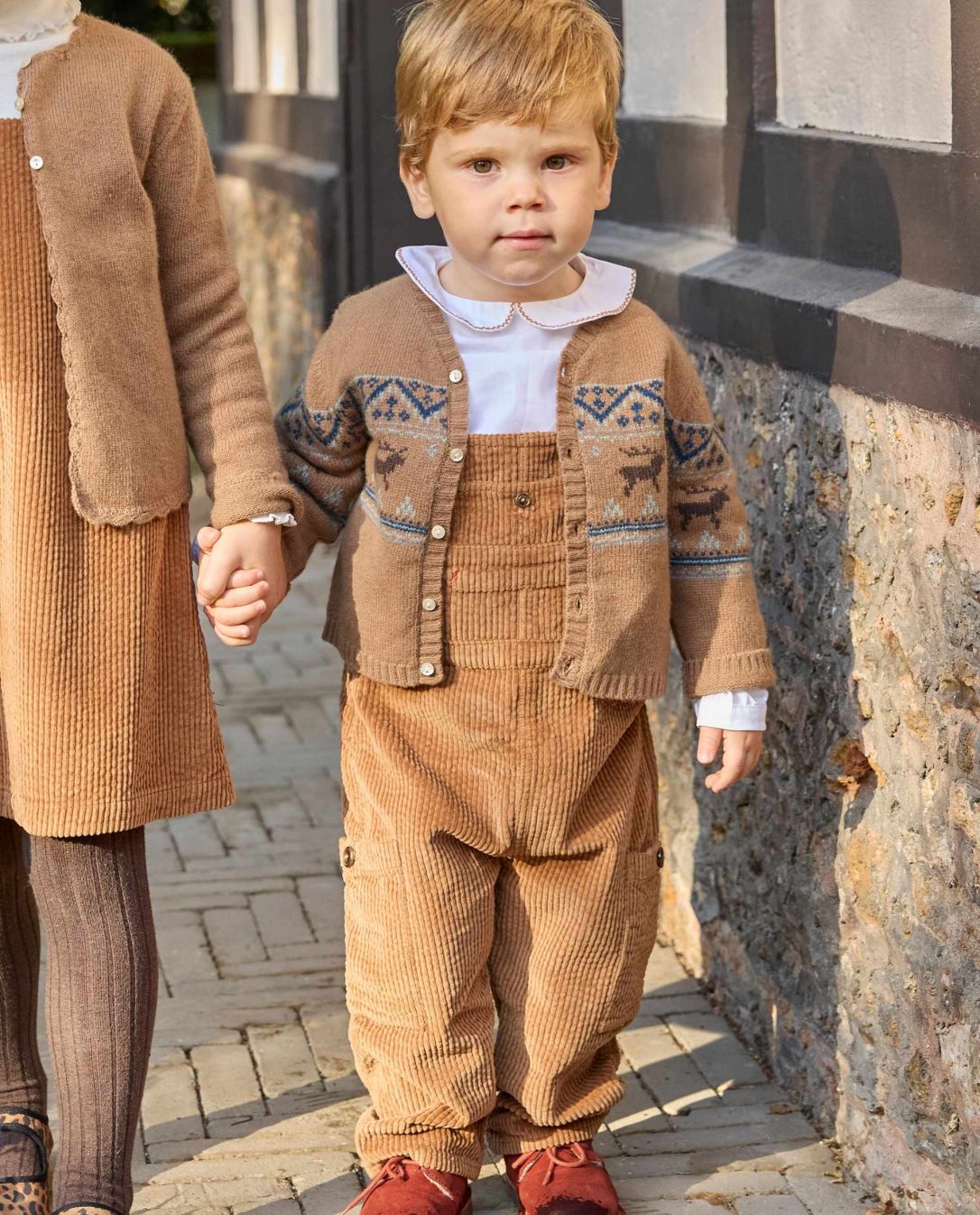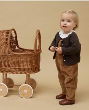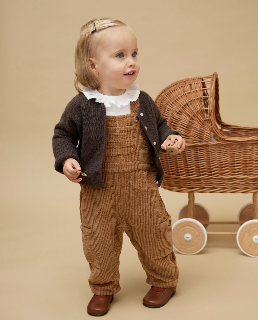 Salopette longue en velours coton. Bretelles boutonnées. Ouvertures côtés et pressions à l'entrejambe. Poche sur la bavette. Doublure en toile de coton. 100% coton.