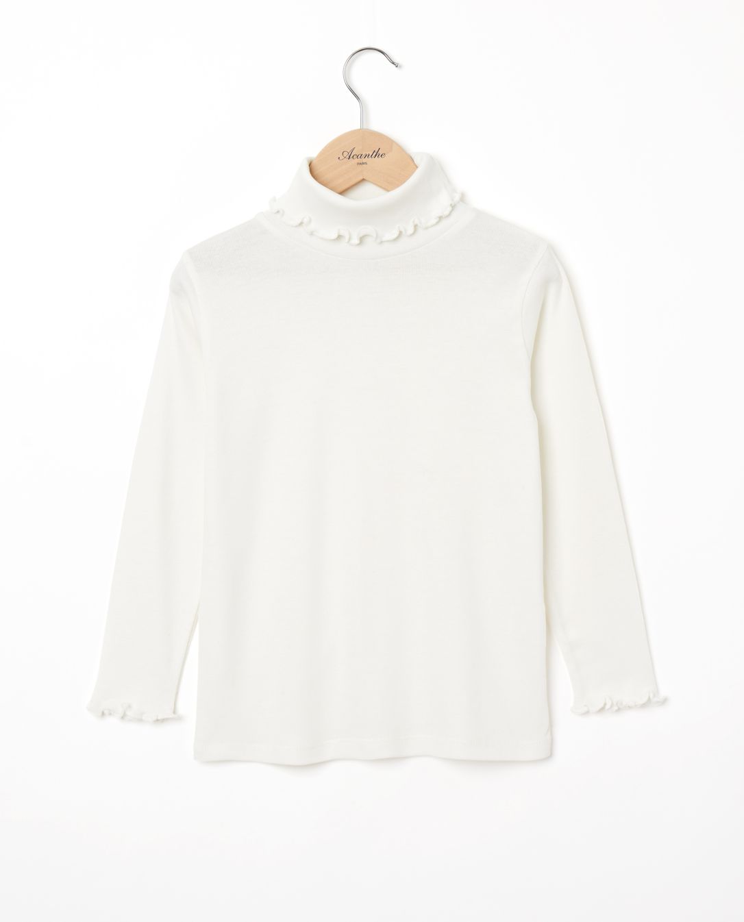 T-shirt manches longues col roulé en maille, finition point de bourdon au bas des manches et au col.
