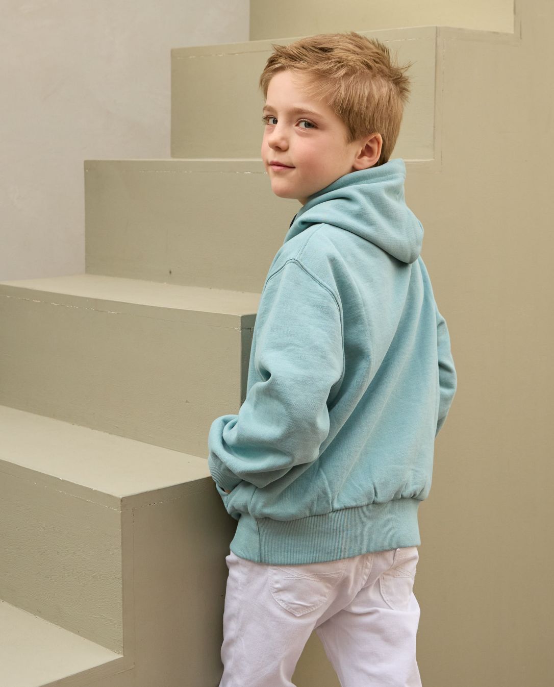 Sweat à capuche. Finitions bords côtes. Manches longues.