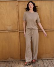 T-shirt en cachemire double fil. Manches courtes. Finition bord côtes. Longueur épaule 62 cm (taille 1 à 3). Le mannequin mesure 1,77m et porte une taille 1.