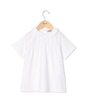 T-shirt en maille jersey avec col rond en popeline blanche. Fronces sous le buste devant et dos. Boutonné au dos.100% coton.