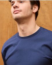 Tee shirt manches courtes en maille jersey coton. Encolure ronde. Le mannequin mesure 1m95 et porte une taille xl. Le coton est une fibre végétale, hypoallergénique. C’est une matière avec un bon pouvoir absorbant et isolant : il supporte bien la chaleur. 100% coton.