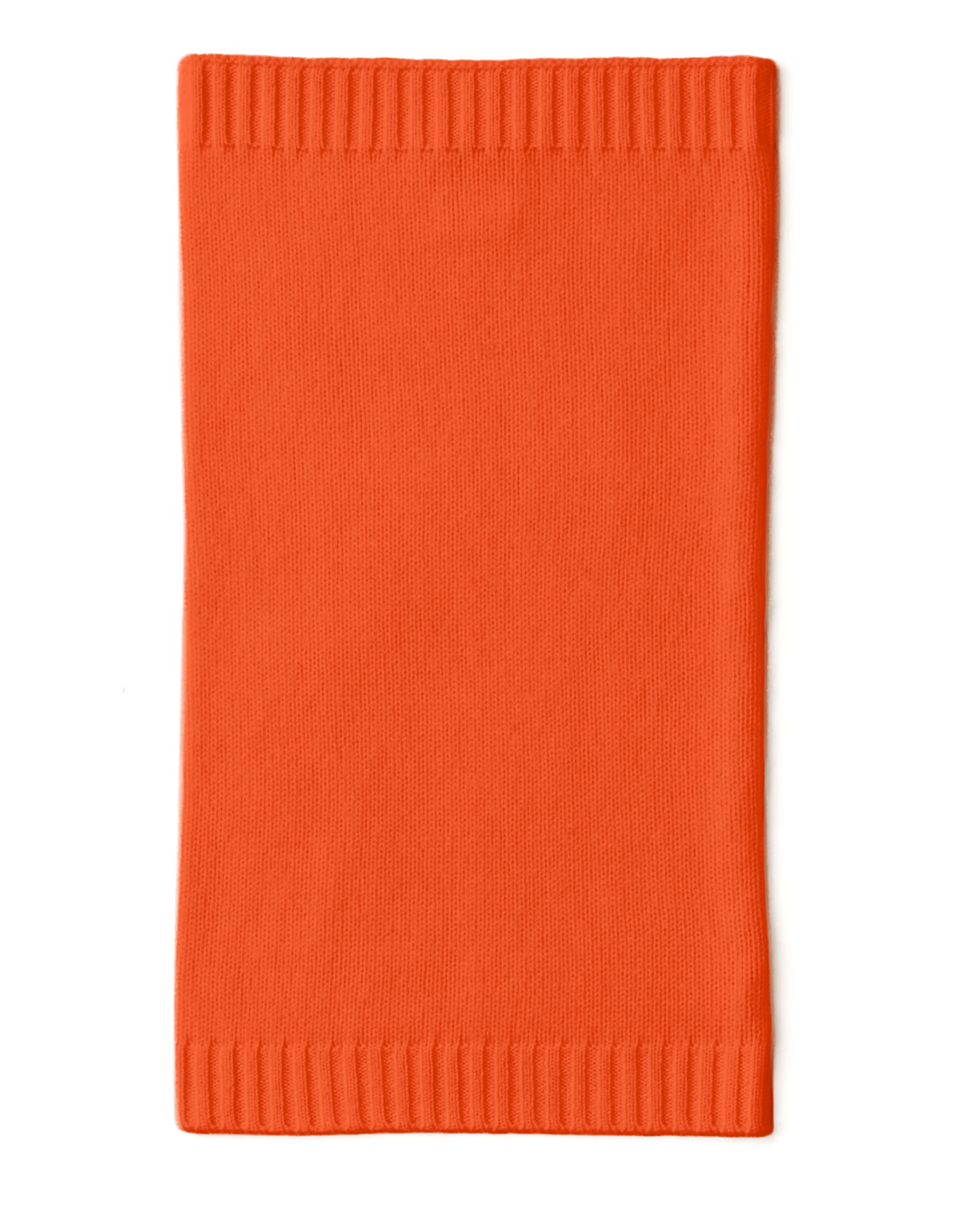 Tube cache-cou en cachemire double fil. Maille jersey jauge 5. Finition bord côtes.