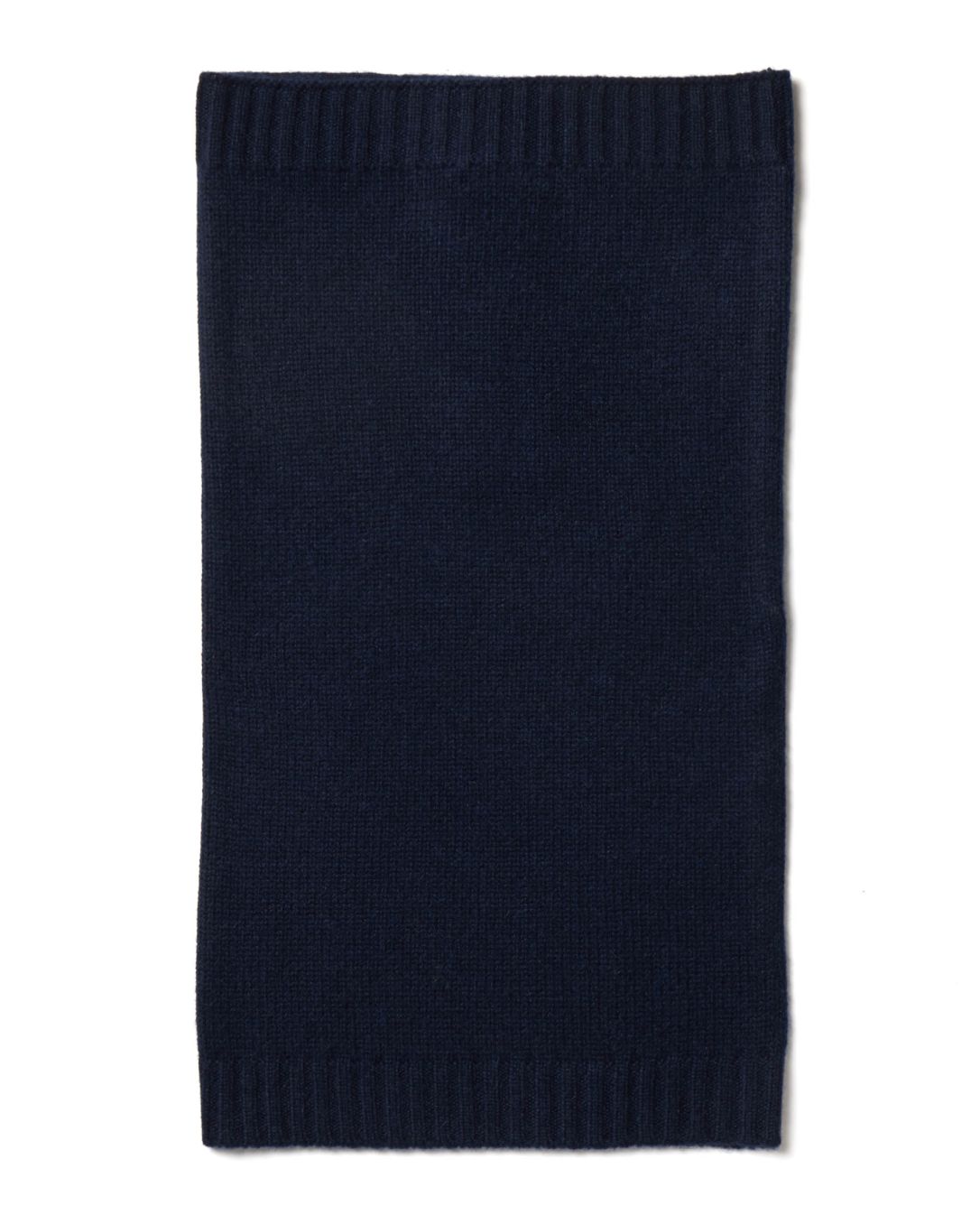 Tube cache-cou en cachemire double fil. Maille jersey jauge 5. Finition bord côtes.