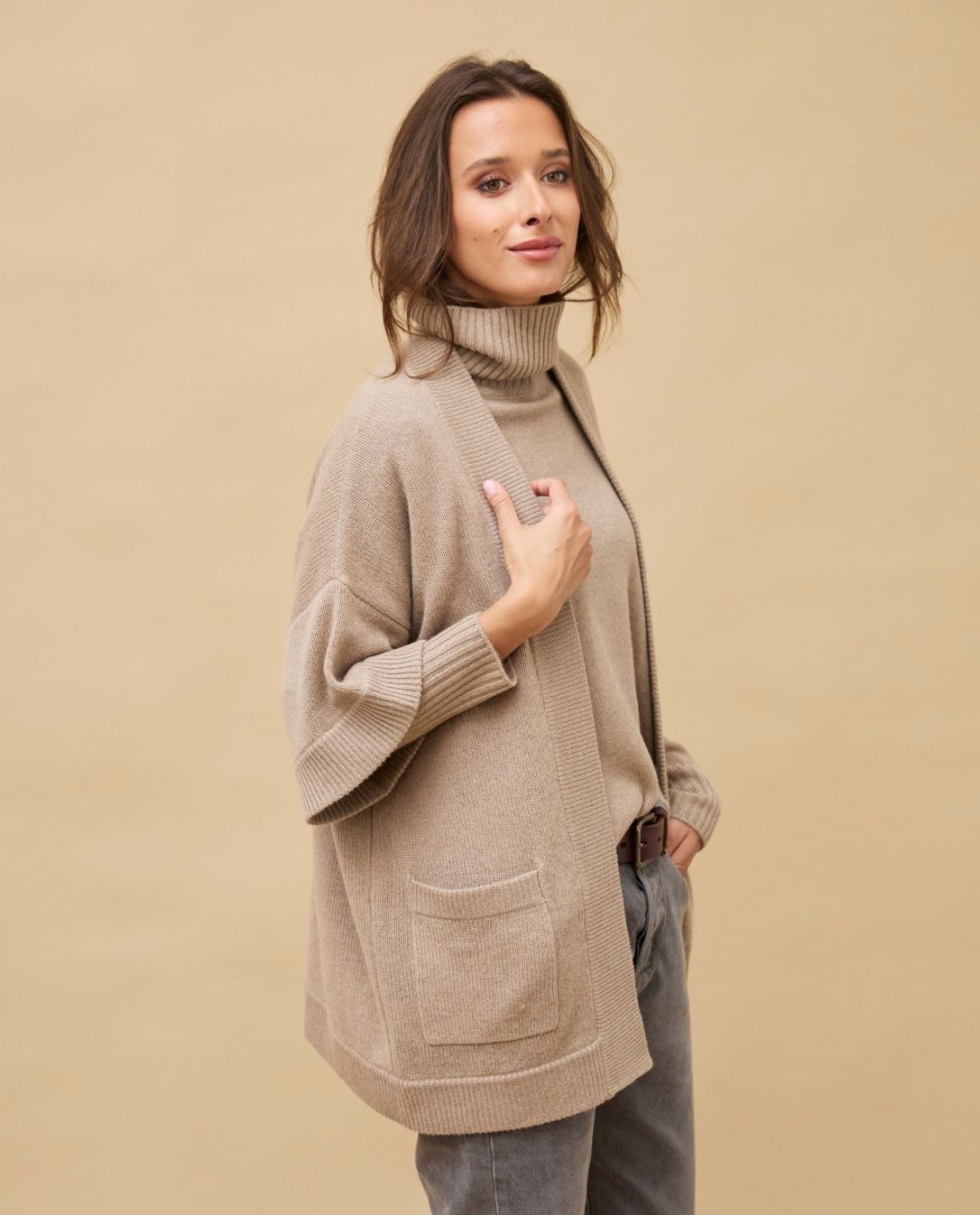 Veste kimono beige 100% cachemire